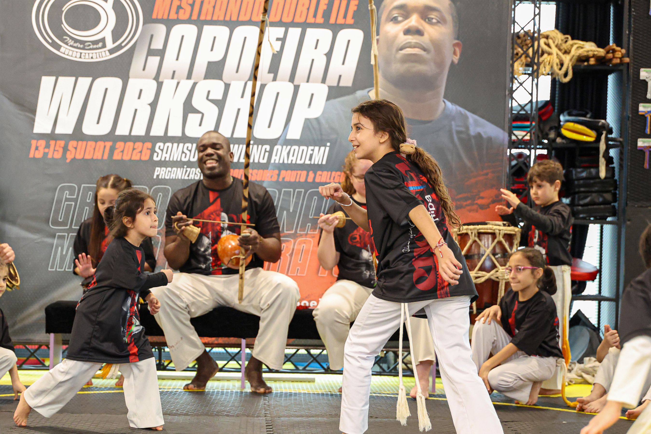 Merkez okulumuzun eğitmenlerinden Mestrando Duble ile (Eduardo Dos Santos) üç gün boyunca Capoeira workshopları gerçekleştirdik.